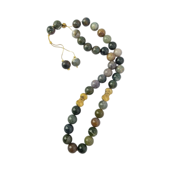 Natural Moss Agate – (Golden Hematite & Stainless Steel Edition)