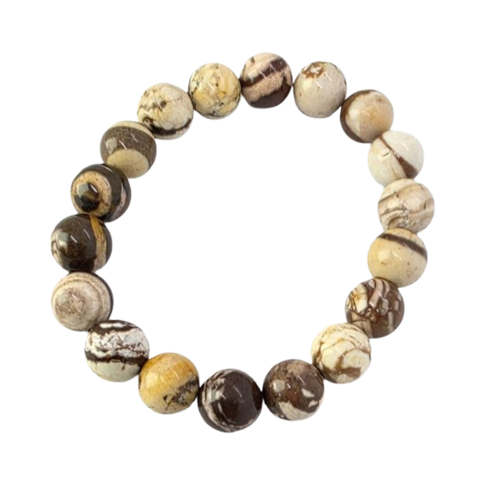 A rugged yet refined 10mm Mountain Jasper bracelet. Featuring natural earthy patterns and a high-durability elastic fit. Inspired by the stillness of the mountains.